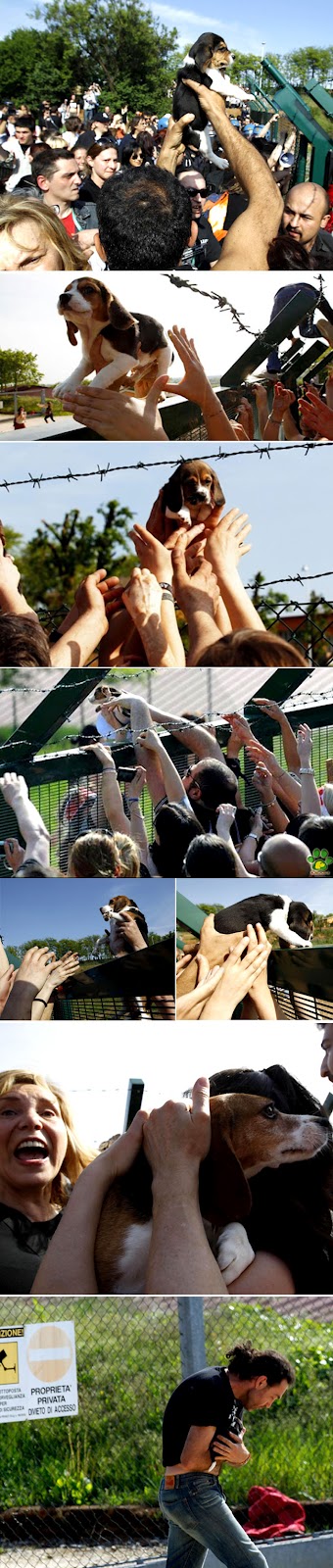 Aos poucos, filhotes, fêmeas esperando filhotinhos e cães maiores iam passando de mão em mão para uma nova vida, longe dos horrores dos laboratórios de testes. Ativistas e donas de casa corriam abraçados aos animais enquanto a polícia tentava dispersar a multidão.